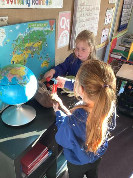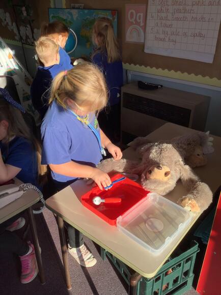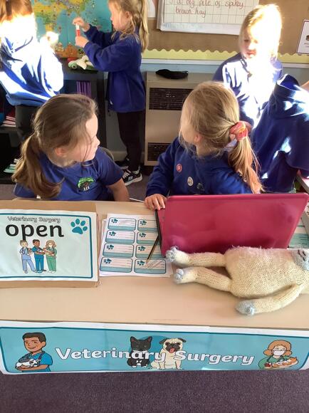 Cherry Class came back to school after the holidays to find a vet's surgery had been set up in their classroom. They are already doing a great job of looking after poorly and injured animals.